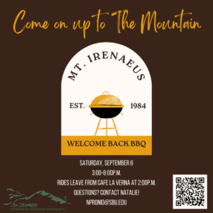 Class of 2025: join us at the Mountain for an open afternoon away and our annual Senior BBQ! Take a hike on the trails, swim in the pond, relax in the House of Peace, or visit with the brothers and Mountain Community one last time as a student! All seniors, grad students, and anyone graduating in 2025 are welcome – if you haven’t been to the Mountain yet during your time at Bona’s, now is your chance! Rides are available…