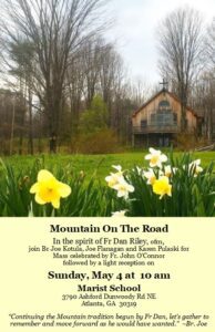 Join the Mountain on the Road team on May 4 for Mass at Marist School in Atlanta! In the spirit of Fr. Dan Riley, ofm - join Br. Joe Kotula and Karen Pulaski from the Mountain and Joe Flanagan and Fr. John O'Connor from St. Bonaventure University for Sunday Mass with a reception to follow. Hear updates on both the Mountain and SBU and all of the Good News that is ever growing! Please use the form below to let…